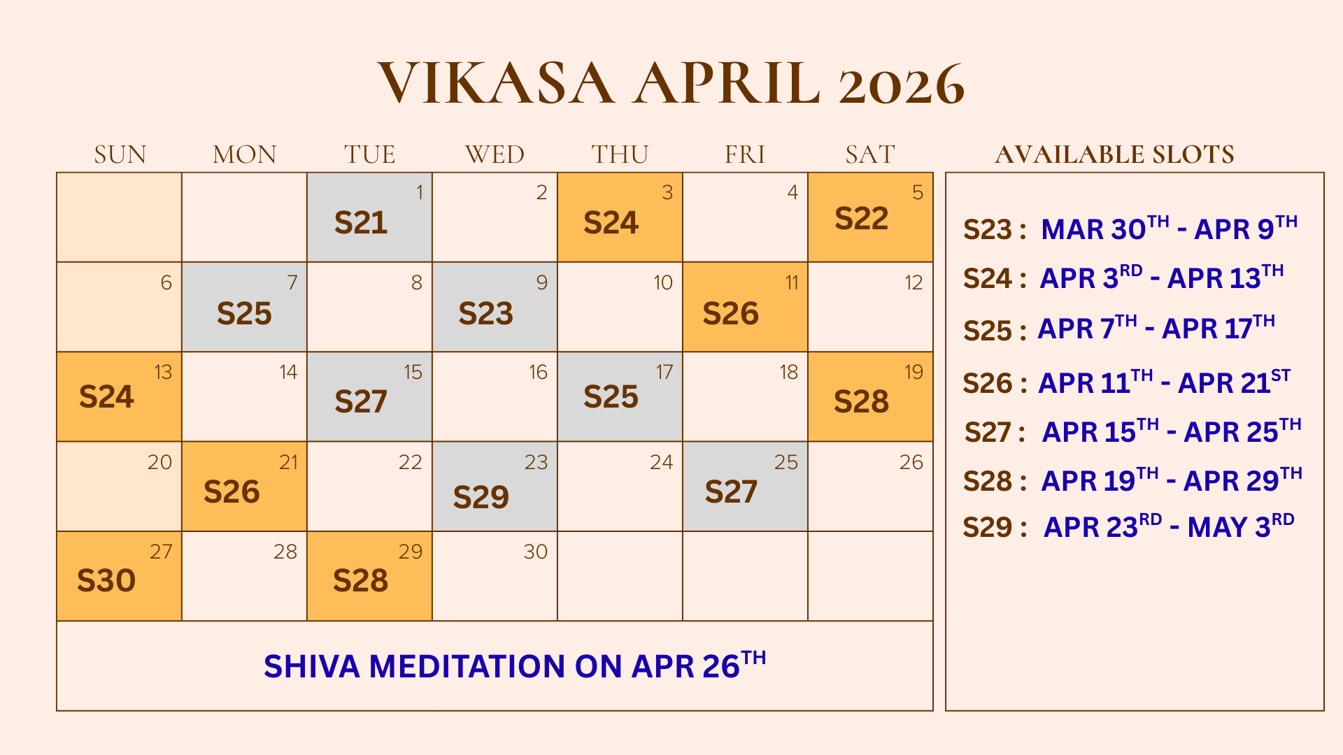 There is no particular age limit for the Program. Anyone from the age of 13yrs to 80 years with minimum physical fitness can attend.